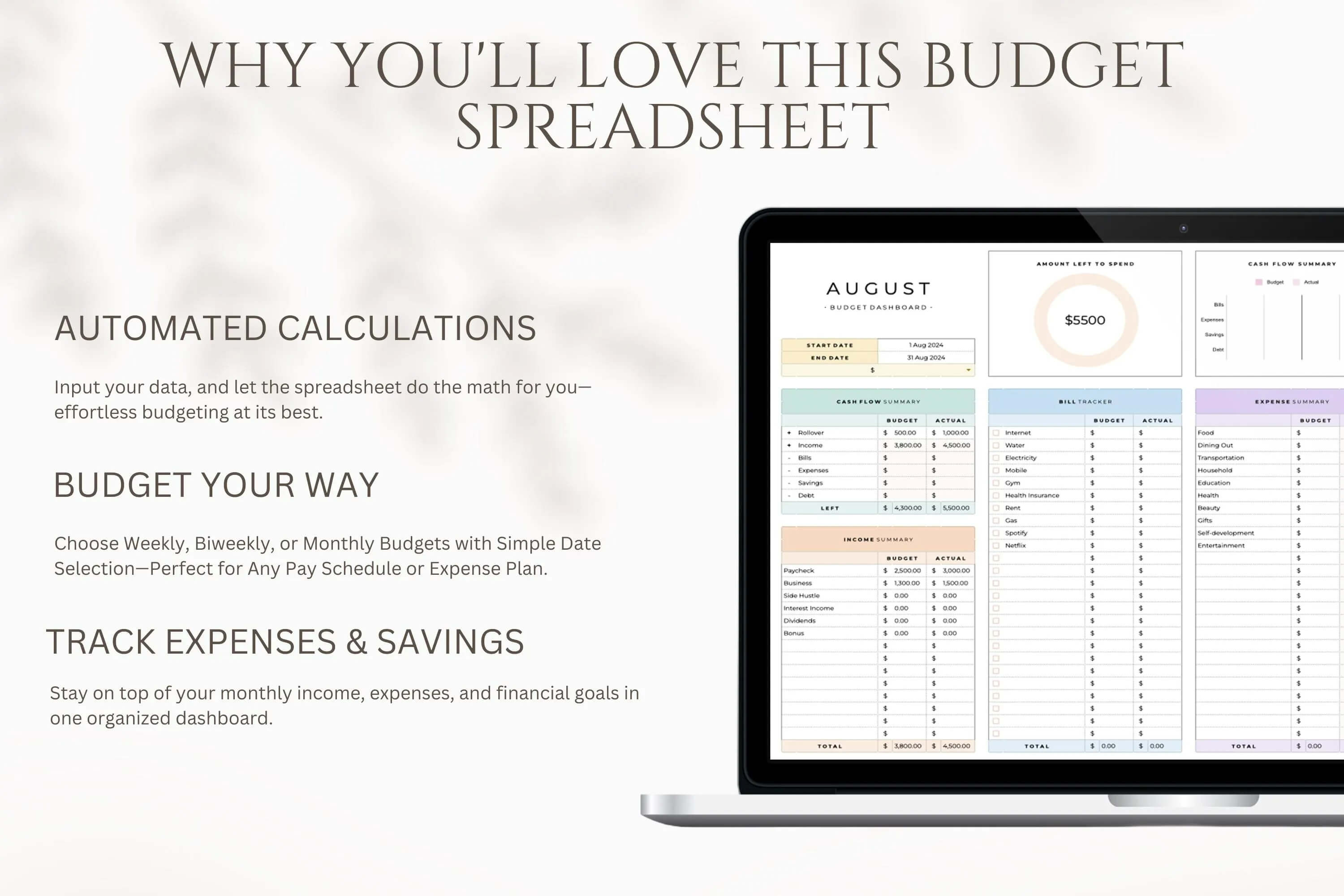 “Seeing everything in one place made it obvious where my money was leaking. This was the first budget I actually stuck with.” — Sarah M.